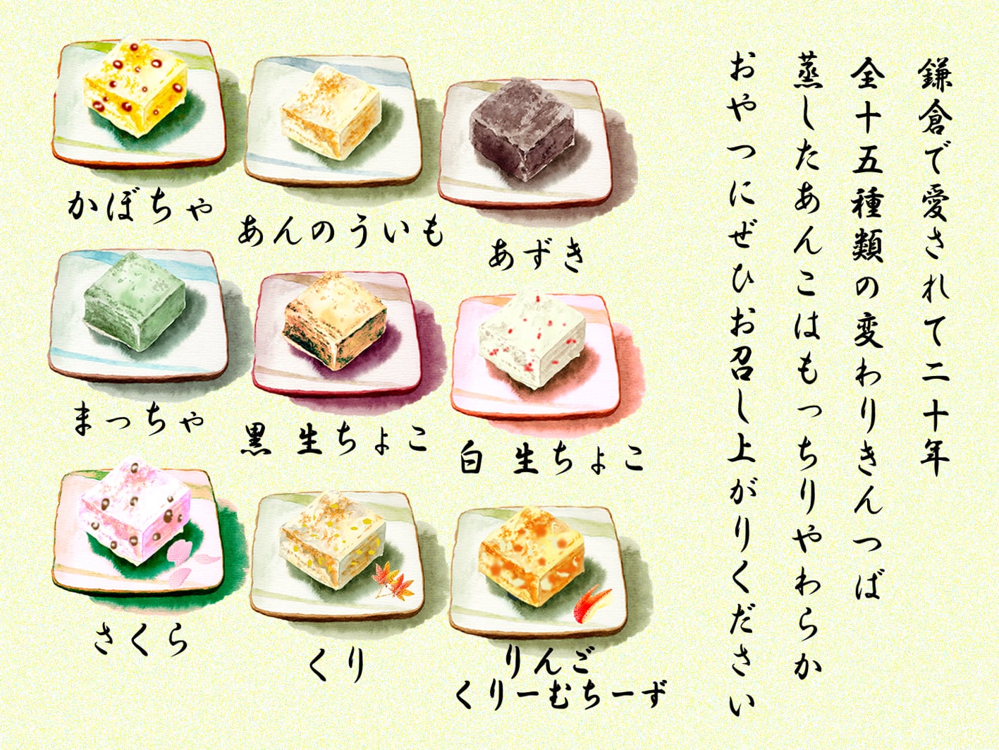 1かぼちゃ 2安納芋 3小倉 4抹茶 5うぐいす 6きなこ
